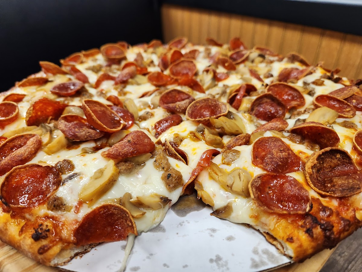 This pizza joint was a pleasant surprise, they had dine in with good service and timely food. The salad, sub and pizza was delicious, Italian sub was as good as most other reputable pizza joint, the side salad was fresh with lots of cheese, pizza toppings were (pep, sausage, muchroom) robust and all the way to the edge, dough was med, not thin not thick and cooked perfect not sure if hand tossed or not but as a whole was really good, drinks were canned soda or bottled water.