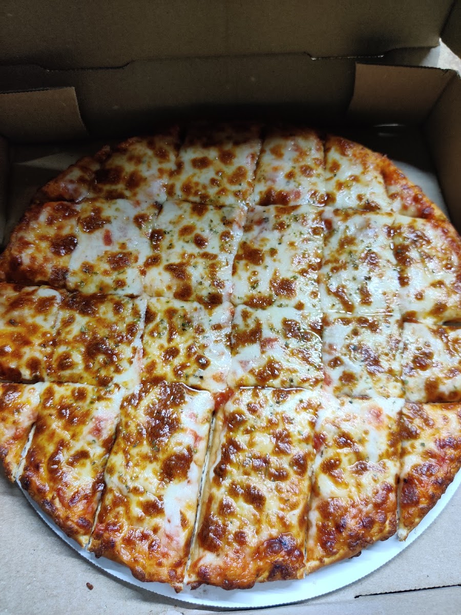 Order the pizza and sub online on Saturday evening. The suggested pick up time wound up being off by maybe 10 minutes not bad for a Saturday. They say the pizza is cheesy they mean it there is a ton of cheese on it. Italian sub was good they provided the sauce on the side so the sandwich was not soggy